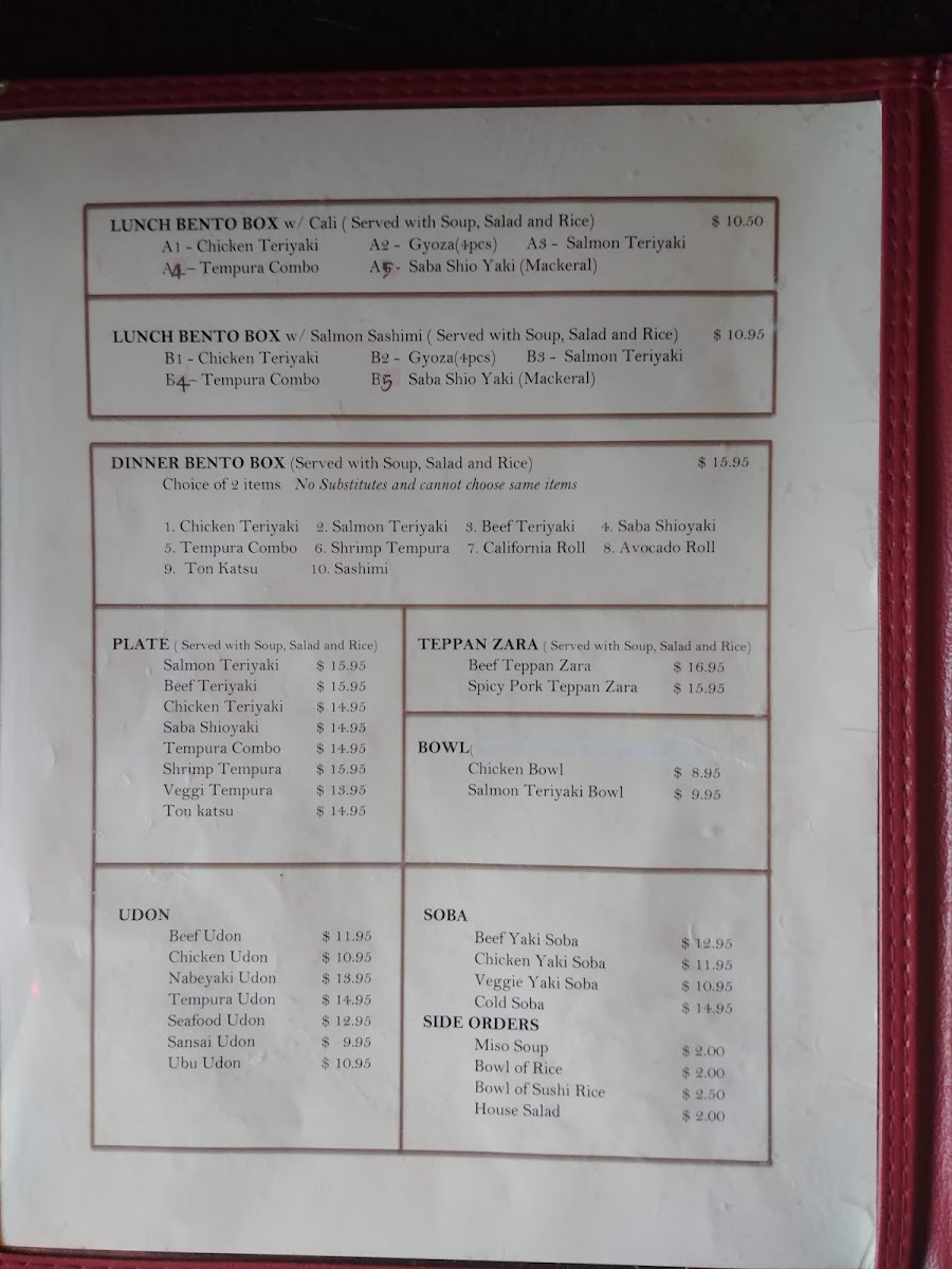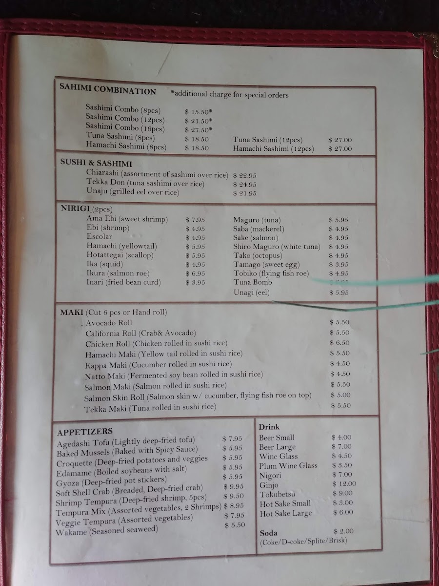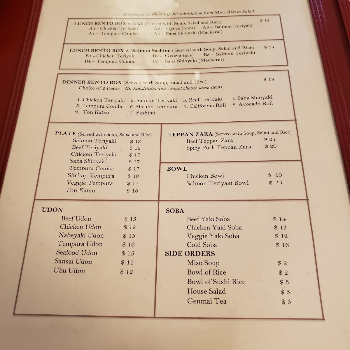The menu at Tachikawa presents a straightforward and inviting selection that reflects the thoughtful simplicity of traditional Japanese cuisine. It focuses on fresh, well-crafted sushi and sashimi alongside comforting dishes like miso soup and warm udon or soba noodles, making it suitable for casual lunches or relaxed dinners.