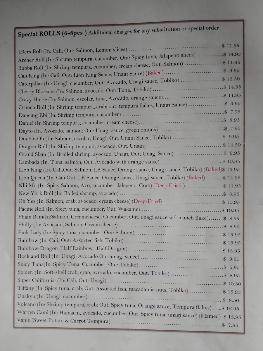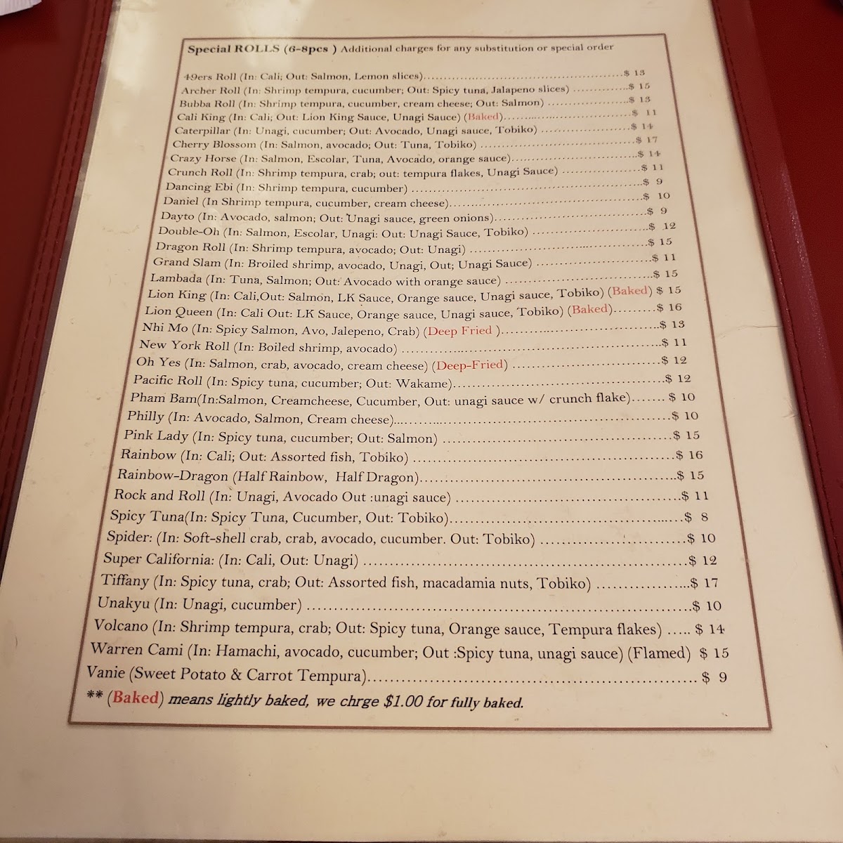 Guests can enjoy a variety of signature rolls, such as the Tiffany Roll and Dragon Roll, which complement classic options like salmon sashimi and shrimp tempura. These dishes pair naturally with a modest but fitting beverage list, including carefully chosen sake, Sapporo beer, and plum wine, providing subtle warmth or refreshment depending on the moment.